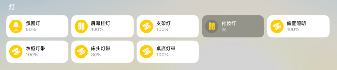 但要从我个人的使用体验来看,有能力的话还是上智能化的灯光更加舒适,而且尽量选择同一家品牌的产品。这样一来,你就可以将灯光进行编组,统一在 app 内进行调色,根据不同的场景来点亮不同的区域或调节亮度,甚至是实现屏幕 / 音乐的声光同步。