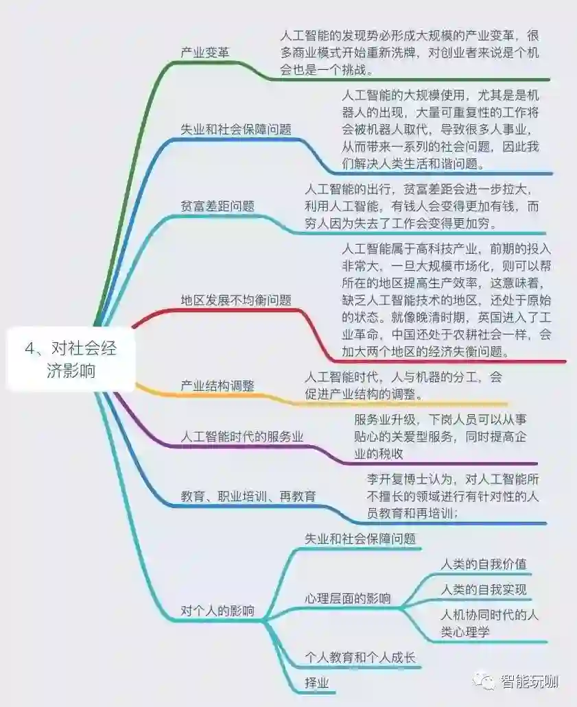 4. 对社会经济影响—失业和社会保障问题:…大量可重复性的工作将会被机器人取代,导致很多人失业,…,甚至导致人类生活和谐问题。