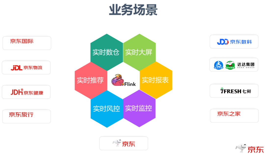 京东Flink服务于京东内部非常多的业务线,有70多个一级部门在使用,主要应用场景包括实时数仓,实时大屏,实时推荐,实时报表,实时风控和实时监控,当然还有其他一些应用场景。对数据计算实时性有一定要求的场景,一般都会使用Flink进行开发。
