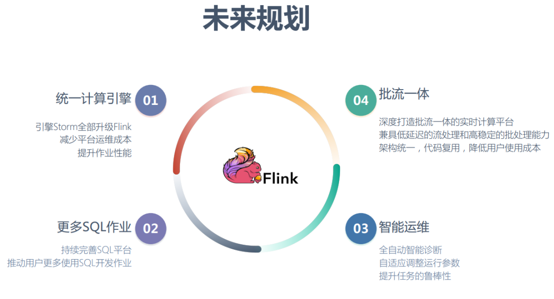 引擎Storm全部升级为Flink,这样可以减少平台的运维成本,同时可以提高作业性能(目前已经接近完成)。