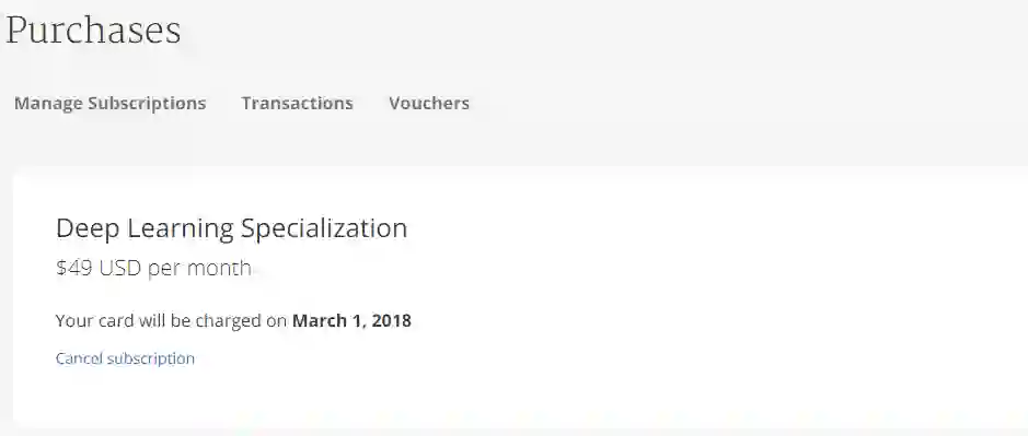 课程将按月费收费,每月 49 美元。不过,根据 Coursera 的规则,用户申请的在线课程,前 7 天里可以无限量访问。