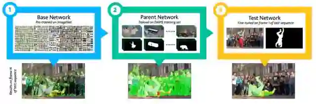 这个流程的结果,是适用于每一个新视频的唯一且一次性使用的模型,由于第一帧的标注,对于该新视频而言,模型其实是过拟合的。由于大多数视频中的目标和背景并不会发生巨大改变,因此这个模型的结果还是不错的。自然,如果该模型用于处理随机视频序列时,则它的表现得就没那么好了。