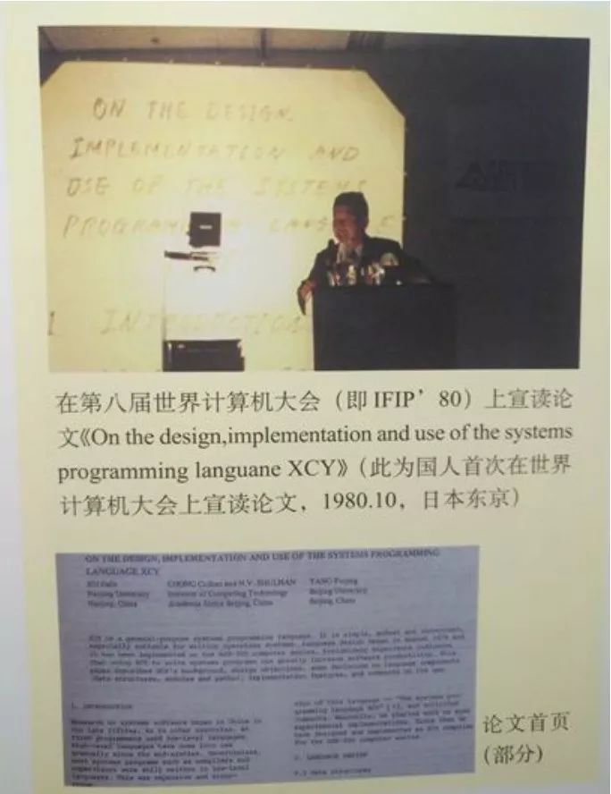1978年,国内首次计算机操作系统学术会议召开,徐家福作为“系统程序设计语言”专组的召集人,组织讨论。会后由他牵头设计模块式结构化系统程序设计语言XCY。他专程到北京,住在北京大学,与工作组成员研究讨论,每天工作十小时。XCY论文发表在世界计算机大会上,引起国内外同行关注,为国家赢得荣誉。
