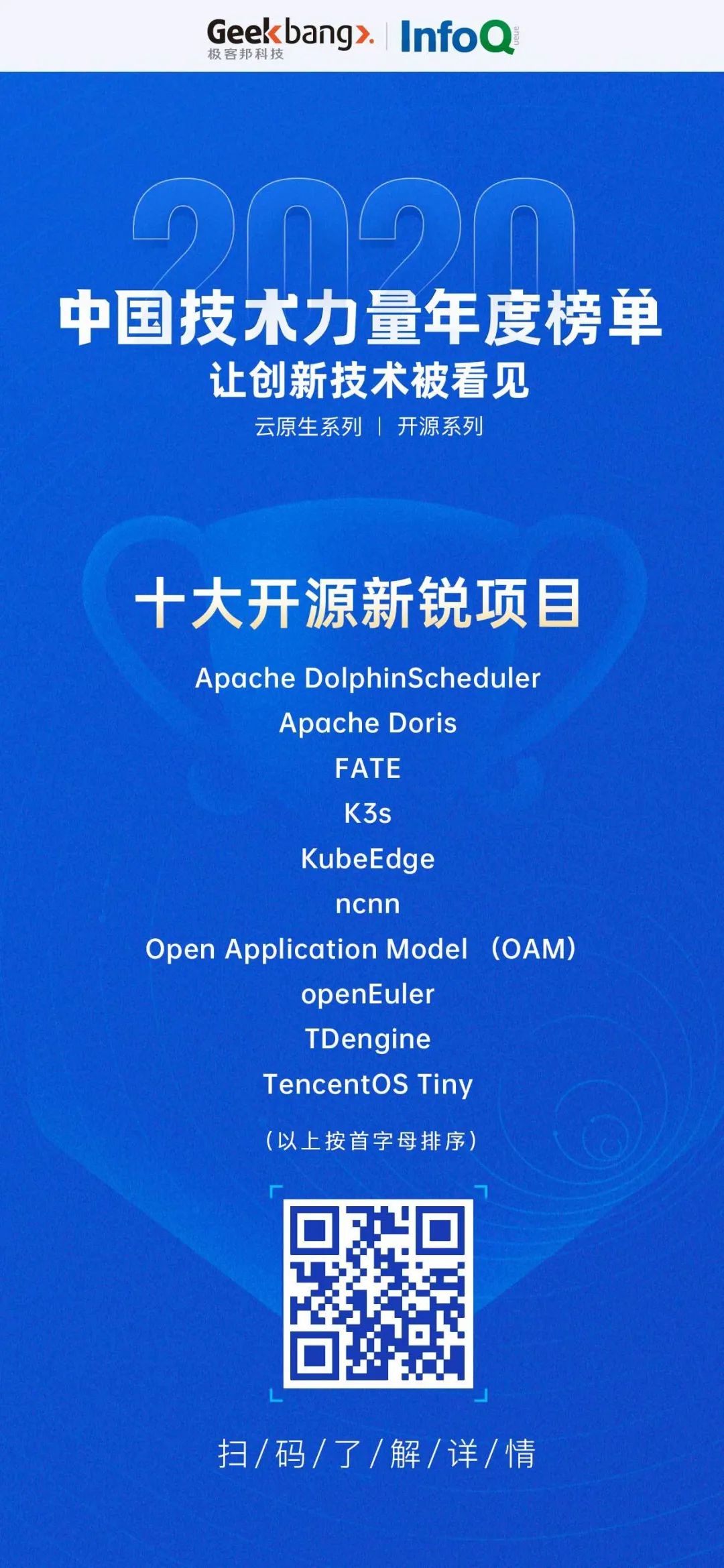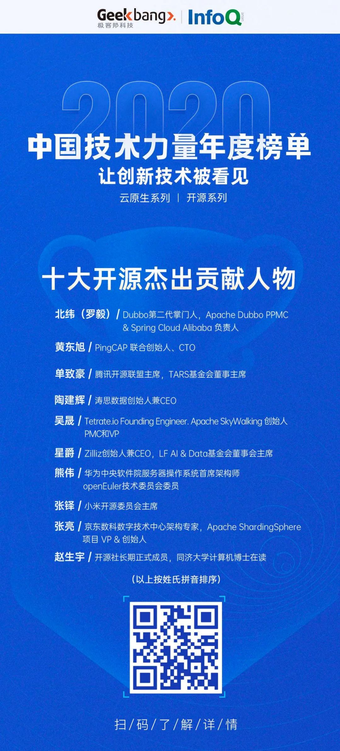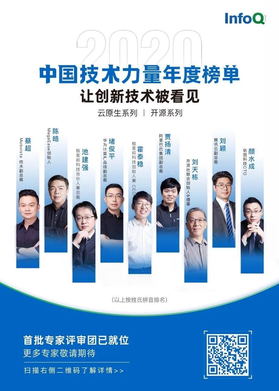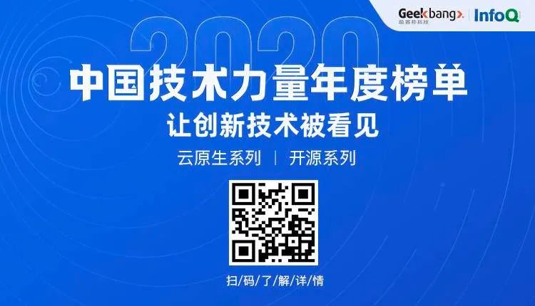 【InfoQ 2020 中国技术力量年度榜单评选】是 InfoQ 作为第三方独立媒体,创立 13 年来首次推出的榜单类活动,秉承“提供可信赖的内容”核心价值观,对本次征集评选严格把控流程、建立统一标准,借助规模庞大的专家团队、编辑团队和开发者社区对参评项目进行多维度评价。