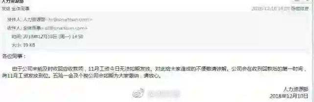 12月10日的时候,在很多公司发放工资的时候,一个关于锤子科技无法如期发放11月份工资的内部邮件截图在很多社群中传播开来。