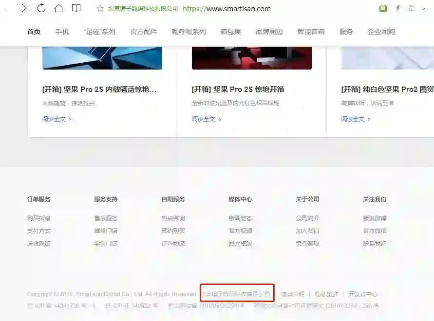 从锤子手机官网的底部我们就能发现,这个官网备注的企业就是北京锤子数码科技有限公司。因此,当这家公司发生巨大的工商变化的时候,大家都直呼锤子要变天了。