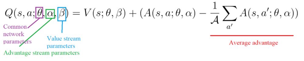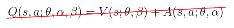 # Q(s,a) = V(s) + (A(s,a) - 1/|A| * sum A(s,a'))