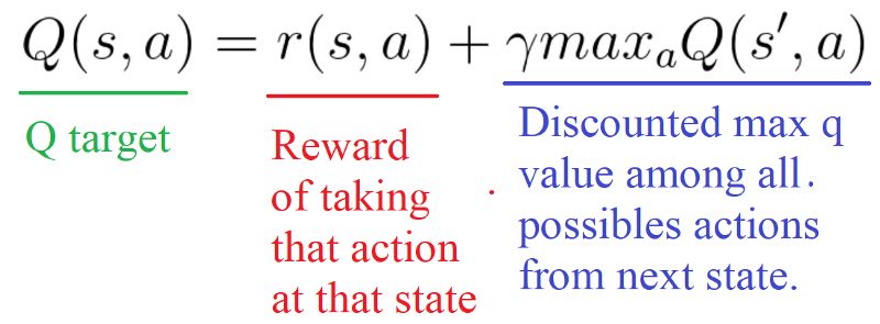 请记住,Q值(Q(s,a))表示状态 s 下采取行动 a 。