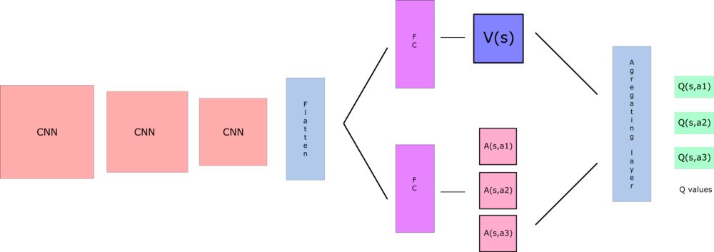 通过解耦估计,我们的DDQN可以直观地了解哪些状态是(或不是)有价值的,而不必了解每个状态下每个动作的效果(因此,还是需要计算V(s)的)。