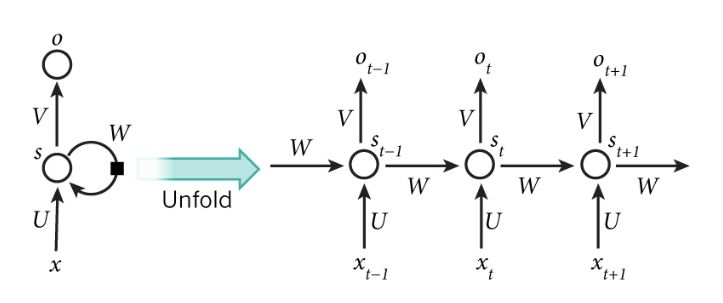可以把x理解为自然语言句子中逐个单词的词向量,其中隐藏层St=f(Uxt+Wst−1),Wst-1便是前一个单词所携带的语义信息。由于每一层的St都会向后一直传递,所以理论上St能够捕获到前面每一层发生的事情。然而随着层数加深,RNN最终会计算成W的连乘积形式,如果初始梯度过大或过小,便会导致连乘积很大或趋近于0,进而无法有效学习,也就是梯度爆炸和梯度消失。