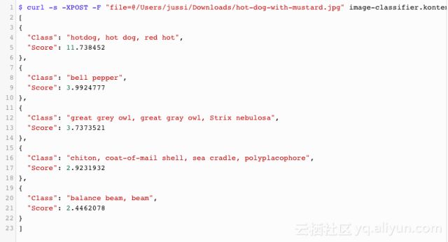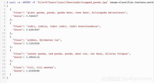 在TensorFlow模型前使用简化的API,那么,使用普通的curl就可以很容易的测试图像分类:
