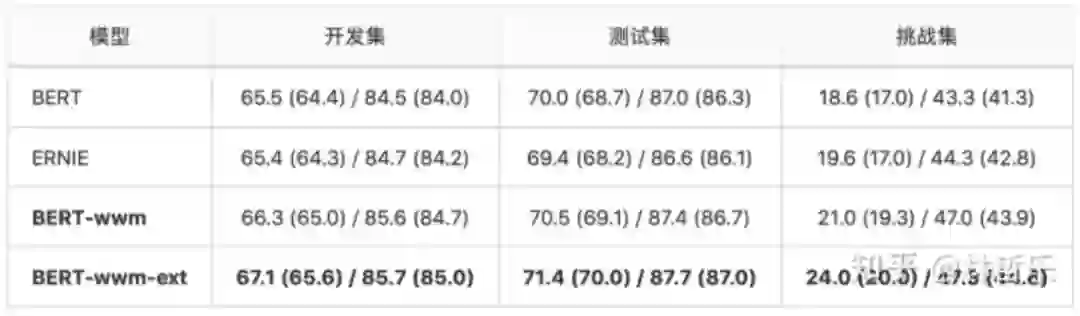 BERT-wwm-ext与ERNIE在该任务上的效果较好: