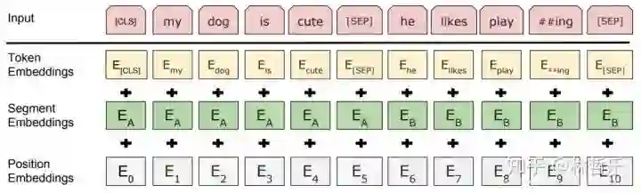 b.Segment Embeddings:用[SEP]标志将句子分为两段,因为预训练不光做LM还要做以两个句子为输入的分类任务