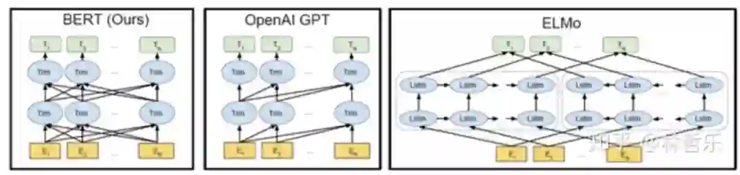ELMO用Bi-LSTM,GPT用transformer的decoder,BERT用transformer的encoder