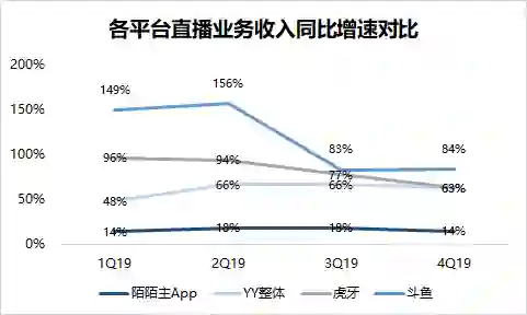 此外,与斗鱼、虎牙等游戏直播平台不同,陌陌主要做泛娱乐秀场直播。有行业分析人士提到,“其实YY主站也不好,游戏类型(的直播)会受益于疫情,秀场好多没法复工,在家不太好播。”