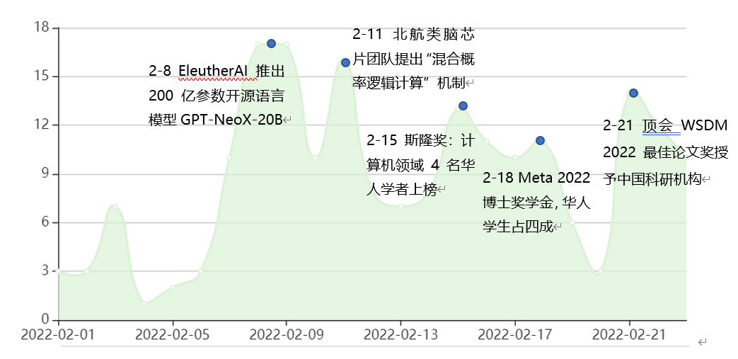 图 1 人工智能领域 2022 年 2 月新闻趋势