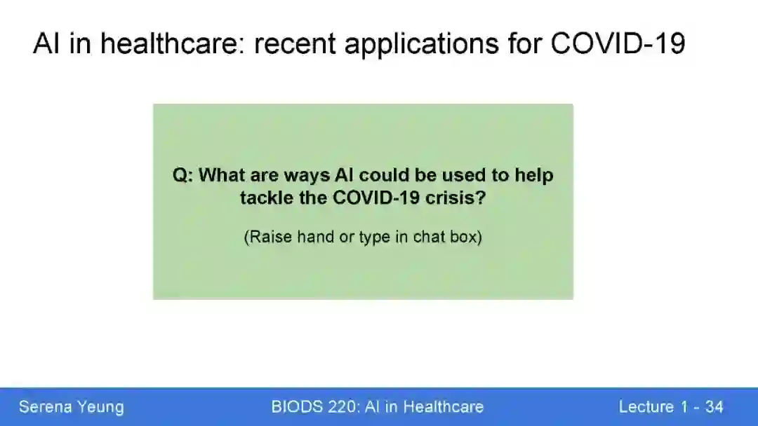 后台回复“AIH” 可以获取《不可错过!斯坦福《医疗人工智能》2020课程,系统性讲述AI在医学(新冠)应用》专知下载链接索引