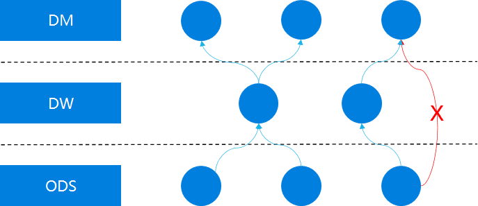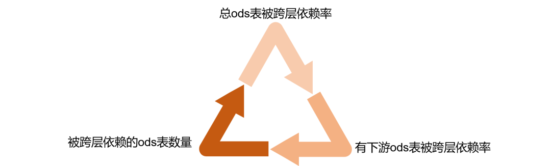 衡量数仓建设水平可以通过以下3个指标:总ods表被跨层依赖率,被跨层依赖的ods表数量,有下游ods表被跨层依赖率三个指标来完成。