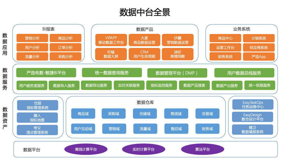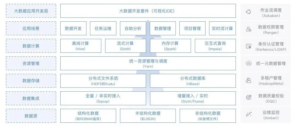 在其他工种开发的眼里,数据仓库的入门门槛非常低,低到技术鄙视链的最末端:“噢……,他们就是写SQL的,他们整个团队都是写SQL的……”,顿时天空飘过一万匹神兽。曾经和未来都有很多人会来挑战数仓工程师存在的意义:“我也能干!”,但是实际情况是:naive!具体可参见严选数据仓库的架构图,这其中的每一个icon背后都有一套工具、平台,甚至于一个团队来支撑运转。