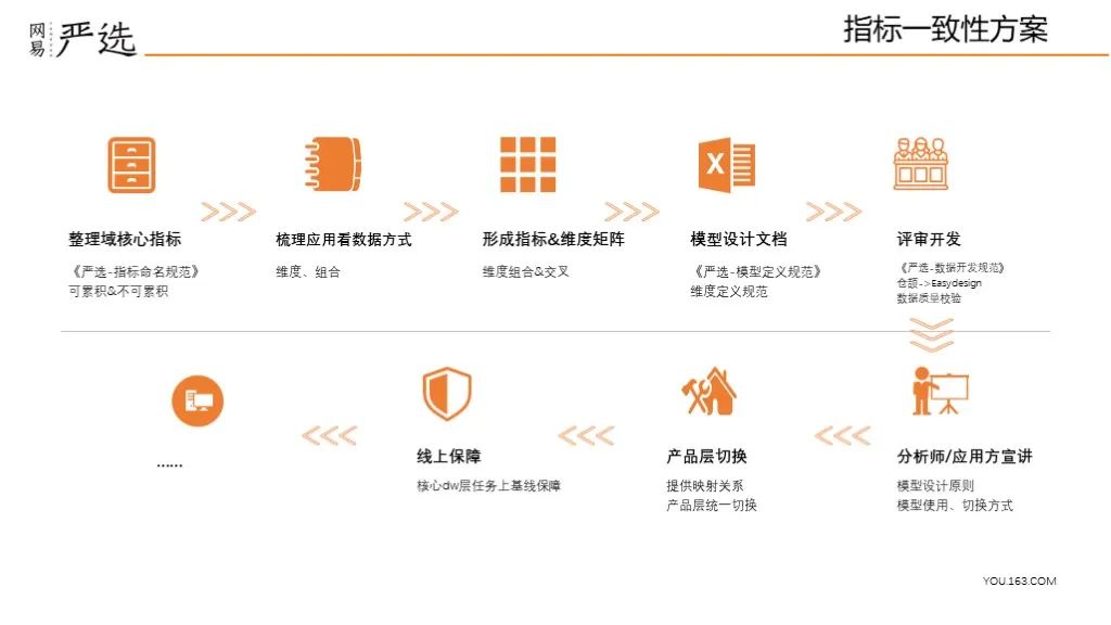 沉淀机制:严选数据仓库已经建立了和分析师定期交流的机制,定期交流沉淀分析师的核心指标,不断丰富严选数据核心资产。