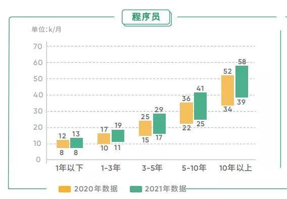 根据拉勾网数据,与2020年疫情前时代相比,工作年限越长的程序员,薪资涨幅也越明显,高级技术人员依然能获得体面的收入。