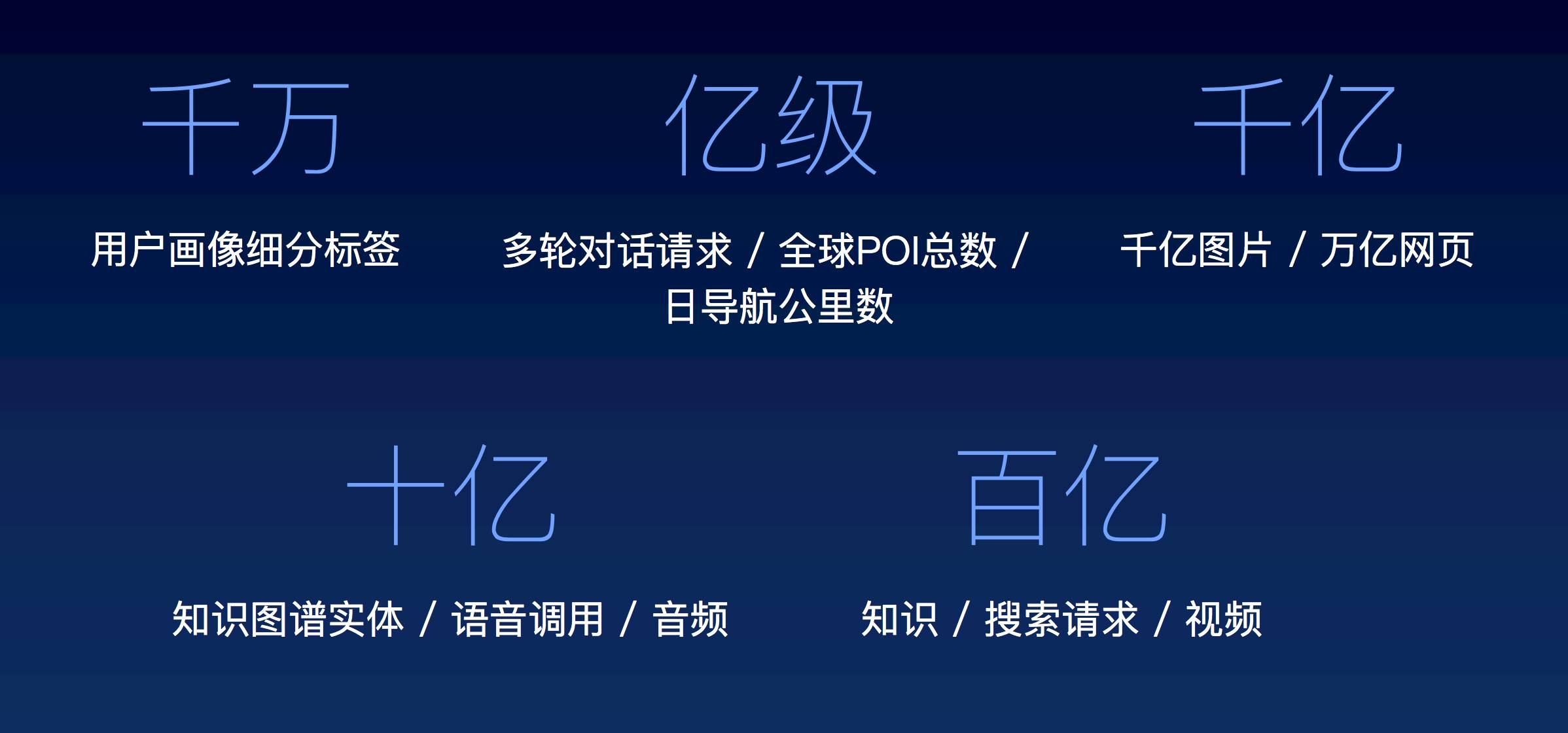 让我们简单看一下百度大数据的“家底”,其实用两个短语就可以概括:万亿级搜索数据,百亿级定位数据。