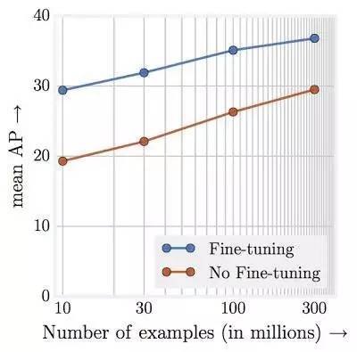 答案是可以。研究人员发现,随着数据增长,模型完成计算机视觉任务的性能直线上升。即使在 300 倍 ImageNet 这么大规模的情况下,性能都没有遭遇平台。谷歌研究人员表示,构建超大规模的数据集应当成为未来研究的重点,他们的目标是朝 10 亿+ 级别的数据进发。
