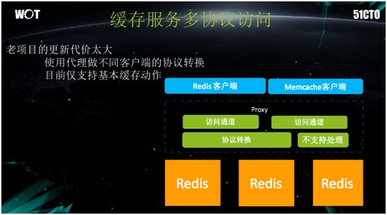 如前所述,我们有着 Redis 和 Memcache 两种客户端,它们是使用不同的协议进行访问。因此,我们通过统一的 Proxy 来实现良好的支持。