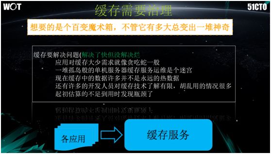 另外,其他需要应对的方面还包括:应用对缓存大小的需求就像贪吃蛇一般,一堆孤岛般的单机服务器,缓存服务运维则像一个迷宫。