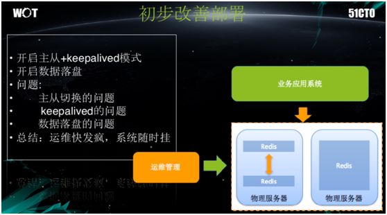 这两个方案看似没有问题,但是架不住 Redis 的滥用。我们曾经碰到过一个现实的案例:如上图右下角所示,两个 Redis 根据主从关系可以互相切换。