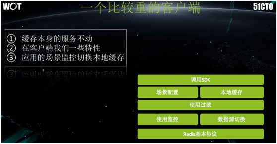 但是在系统真正“跑起来”的时候,我们发现很难对其进行部署和扩容,因此在改造时,我们做重了整个缓存客户端 SDK,并引入了场景的配置。
