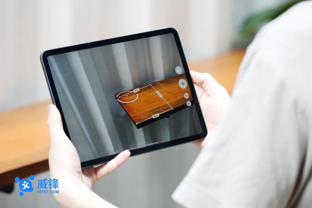 之前在 iPad Pro 2018 上使用「测距仪」时,需要先移动设备来获得测量物体和它所在表面的参照框架才能开始测量,而且在一些边缘差别不大的表面上,iPad Pro 2018 可能无法识别出不同的三维表面。而 iPad Pro 2020 在激光雷达传感器的加持下则完全不需要任何「前戏」,即开即用,而且也能更准确地测量出不同三维面的数据,甚至能用来测量身高,或者通过参考线和标尺视图来实现更多样的测量效果。