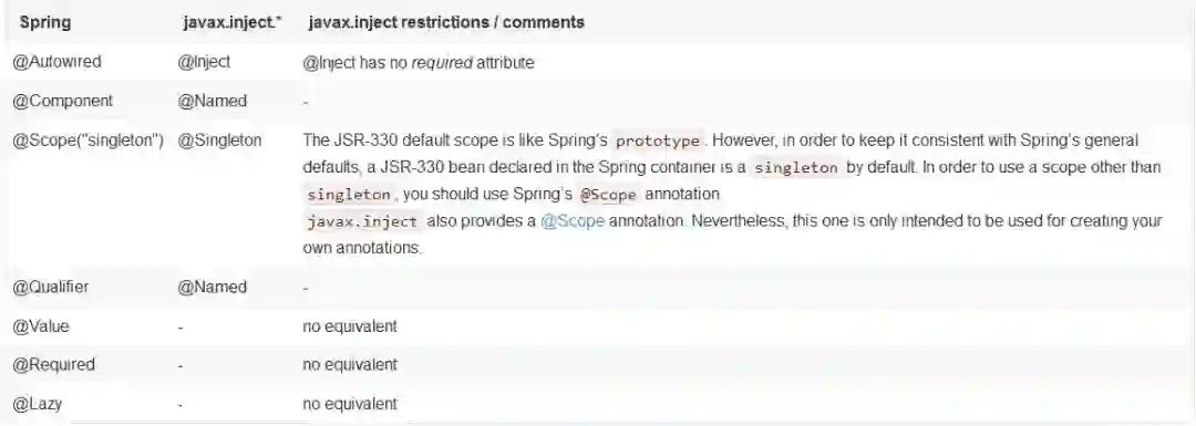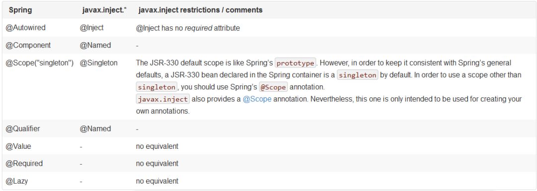 5. Spring注解和JSR-330标准注解的区别: