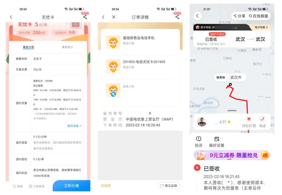 在 App 内下单后,电信安排的是同城的顺丰特快,派送员协助办理号卡激活,仅需提供身份证并拍照。和一些网友一样,我也被询问是否要额外充值,并非强制,拒绝即可。