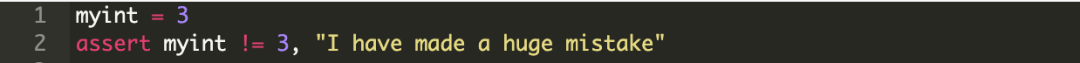 为什么?因为你可以通过输入命令,即在终端输入 python -0 myscript.py 跳过断言来使你的脚本运行得更快。所以如果你使用 assert 控制程序流程(有时会异常结束)或者检查意料之外但不可能发生的条件,那么之后运行程序的人可能会无声的传递错误。