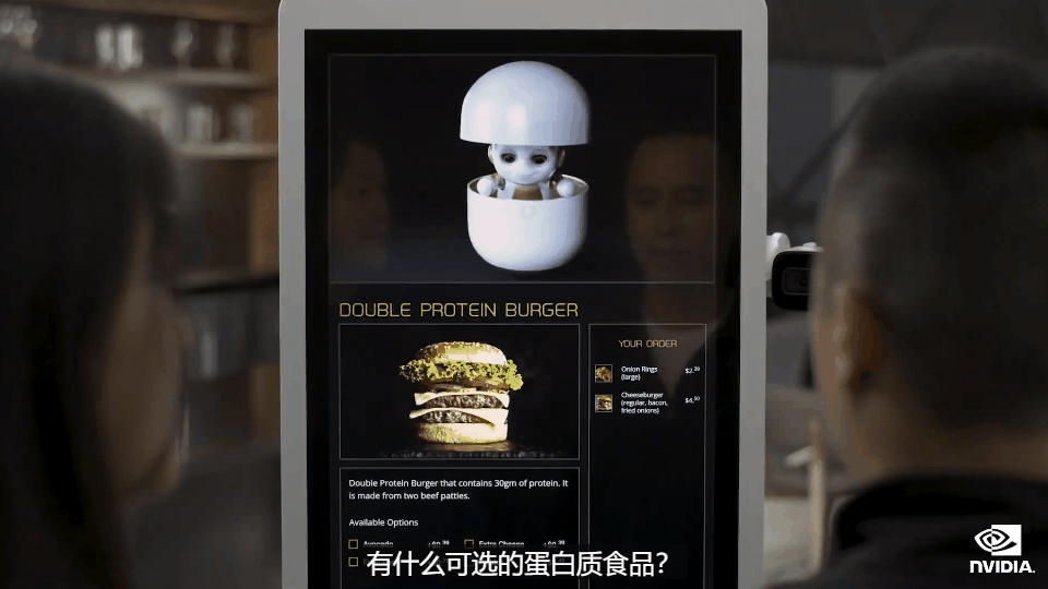 蛋壳公仔Tokkio是一个餐厅客服虚拟助手,能够与顾客交谈并理解他们的意图。
