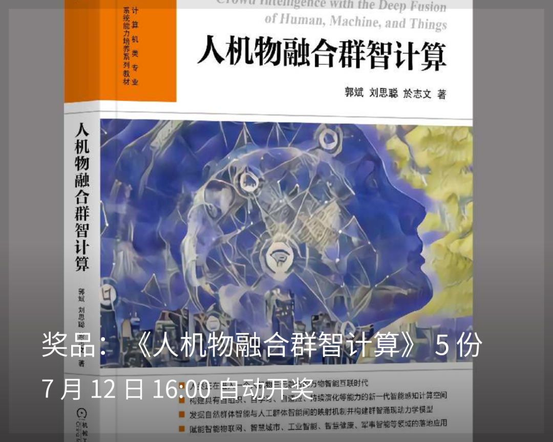 点击下方链接参与抽奖,我们将抽取 5 名 InfoQ 的粉丝朋友们分别送出一本《人机物融合群智计算》,要想了解更多有关万物智能互联网的相关话题,就来读一读吧! 让我们一起进入到人机物三元融合的万物智能互联时代吧!