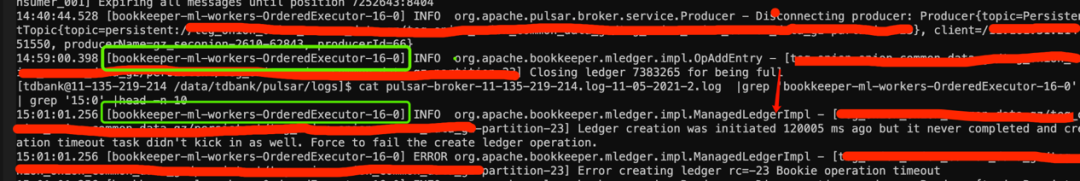如果经过上面所述步骤仍然没有确认问题来源,就需要进一步查看日志,找到含有有价值的信息,并结合客户端、Broker 和 Bookie 的日志及业务的使用特点、问题出现时的场景、最近的操作等进行综合分析。