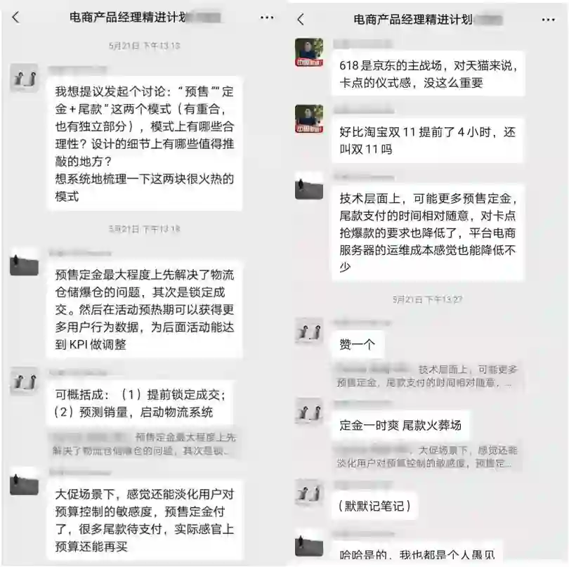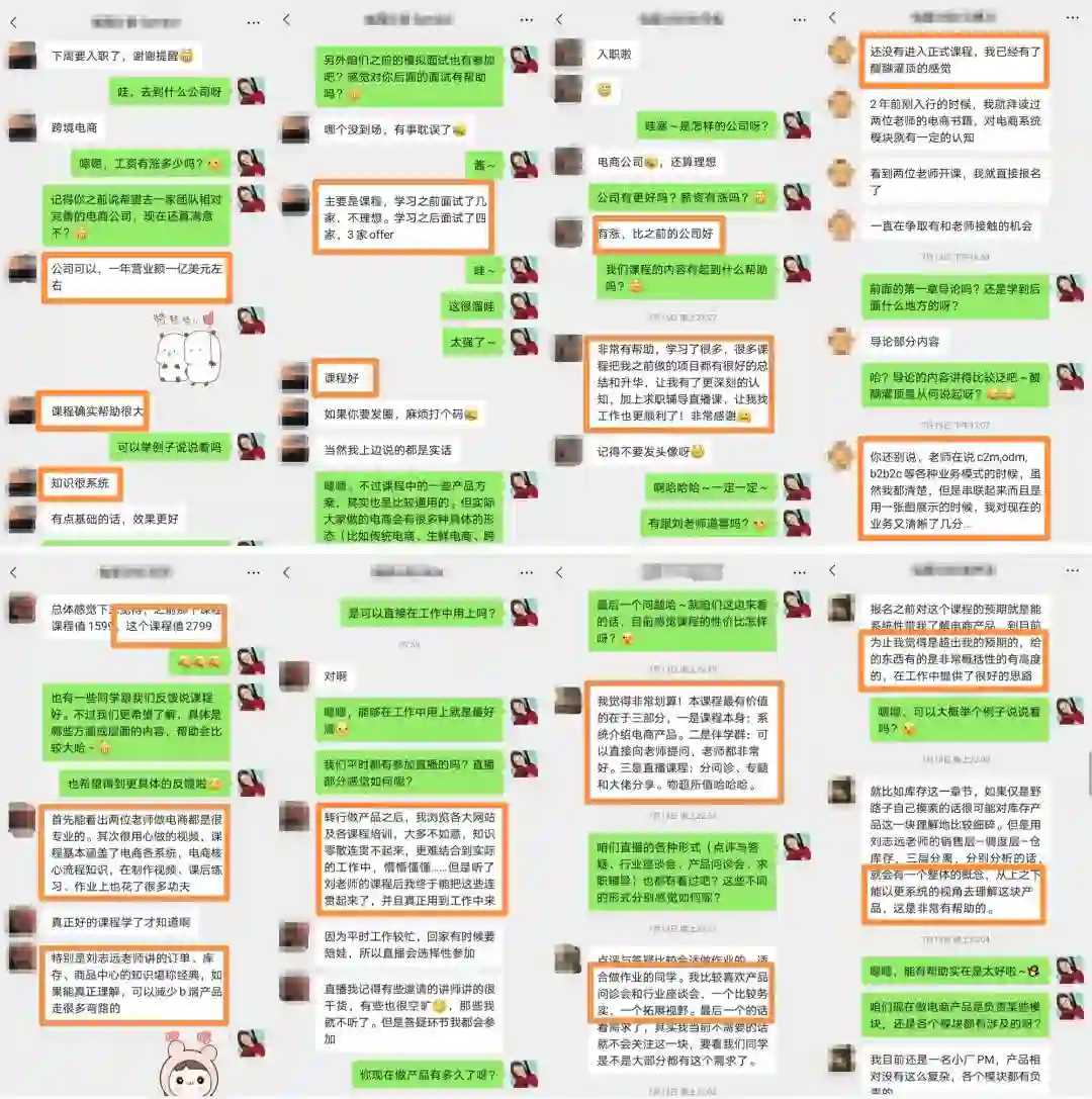 课程同学也横跨各大电商细分领域,如传统电商、跨境电商、自营商城、新零售等等。大家日常相互帮助,共同成长,形成了高质量的电商产品人脉圈!