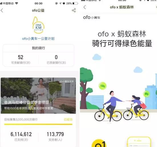 ofo 进行了紧急活动跟进,创造了国民骑行日以及世界无车日,看那品牌活动节奏就感觉在棉花打石头上。