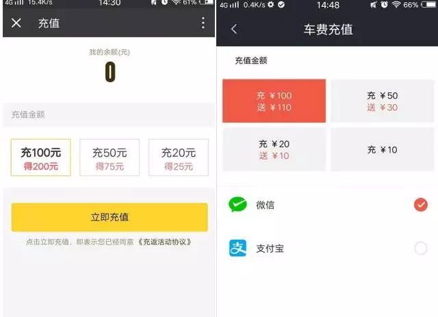 小黄车除了在拉新的活动策划上面持续领跑摩拜。其实在用户留存上也下了不少功夫,充 100 返 100 活动也是小黄车率先推出的。