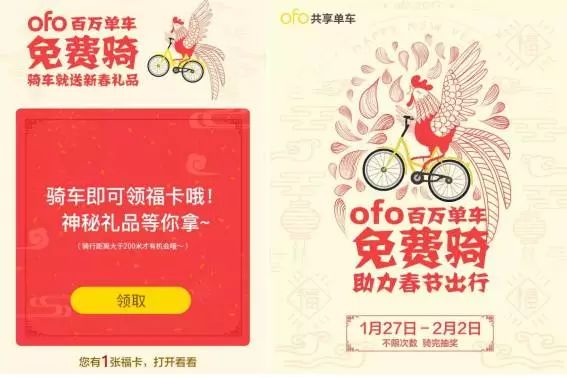 2017 年 1 月 26 日上线的“百万春节免费骑行活动”,共享单车价格战号角吹响。用户在 ofo 免费