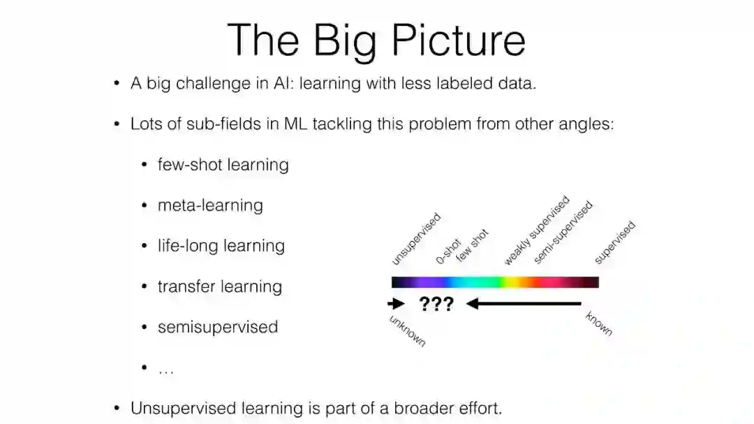 【导读】2018年12月2日到12月8日,第三十二届NeurIPS (Conference on Neural Information Processing Systems)年度会议在蒙特利尔会议中心盛大召开。该会议汇集了机器学习和计算神经领域的顶级专家学者,为广大研究者带来了大量高质量的研究成果。本文特为大家整理了来自DeepMind与Facebook研究人员联名所作的学术报告-无监督深度学习,希望大家喜欢。