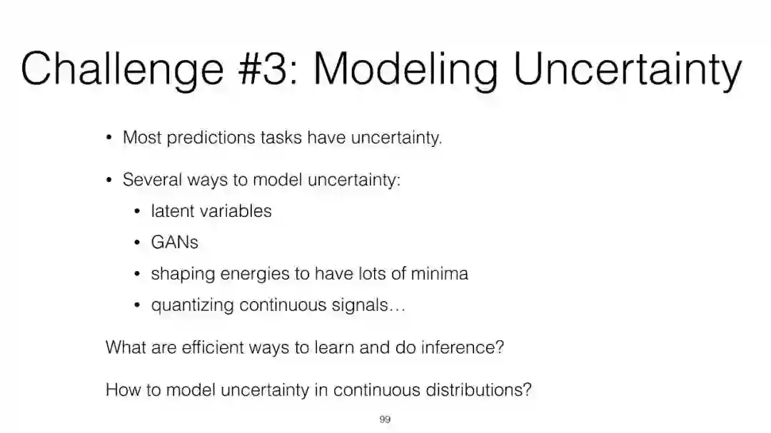 无监督学习在深度神经网络中的地位正变得越来越重要,其既可以使用大量未标记数据,也可以学习到能够快速推广到新任务和场景的表示。其主要的挑战在于如何确定学习的目标是什么,以及如何去定义这个目标。本教程将介绍一种简单粗暴的“预测所有内容”的方法,这种方法基于概率模型实现,可以通过最小描述长度原理(Minimum Mescription Length principle)来尽可能的压缩数据。同时,我们还将对该领域的一些其他方法进行综述,包括非标准的基于能量(energy-based)的模型,自监督的算法和纯粹的生成模型,如GAN等。如果时间允许的化,我们会将讨论扩展到强化学习领域,在其中的无监督学习驱动力被类比为内在动机,诸如好奇心(curiosity)、授权(empowerment)以及压缩过程之类的概念都将被作为学习的驱动因素。