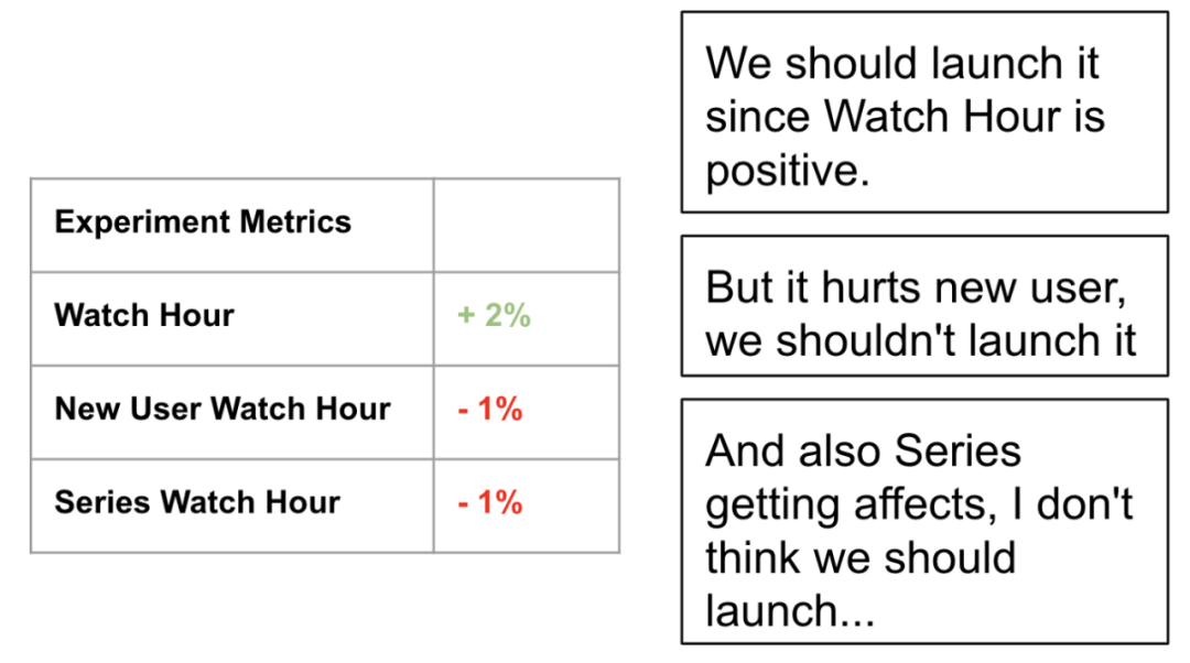 这是一个很糟糕的想法。如果一直这么做,那总会遇到很多实验部分指标为正,部分指标为负。这种情况下,不同团队的人就会为这些指标争论不休,无法上线。这样的情况有违 A/B 测试的初衷:实验带来更好的决策。