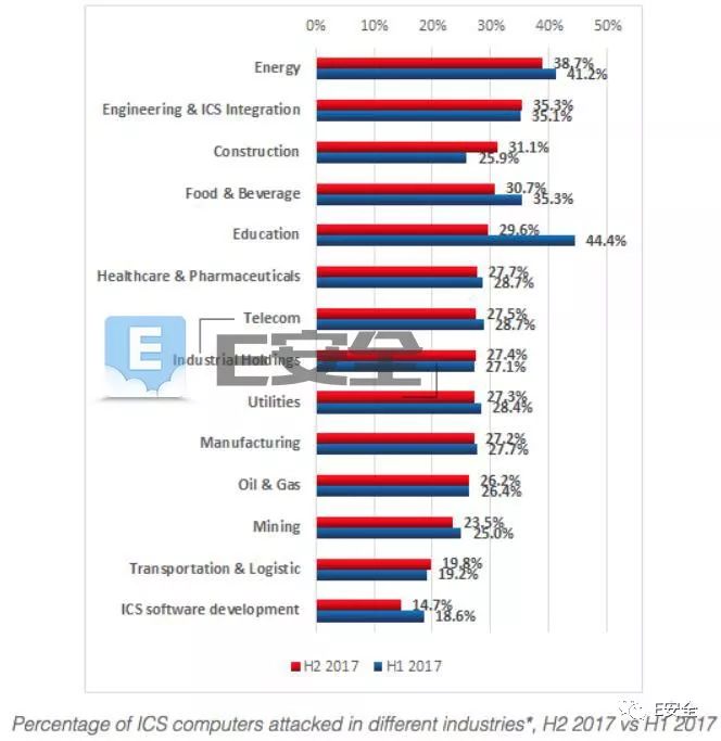 能源部门仍成为最大的漏洞攻击受害者,能源企业设备当中近40%的设备曾受到针对性攻击。