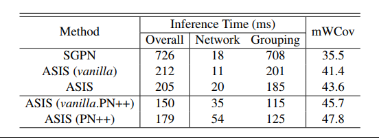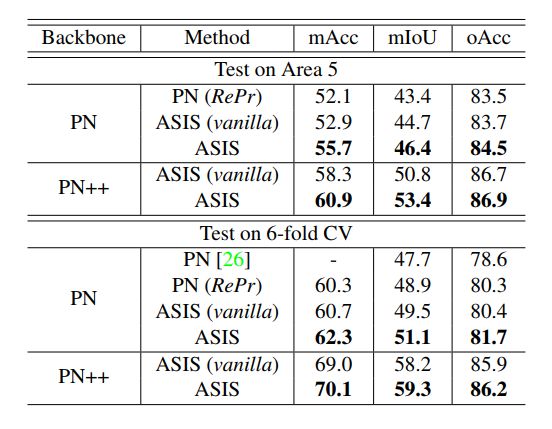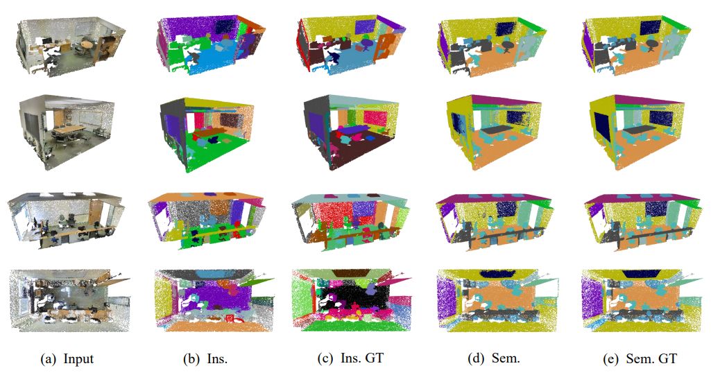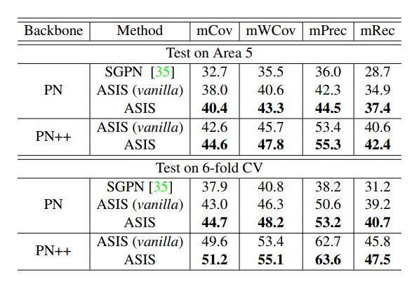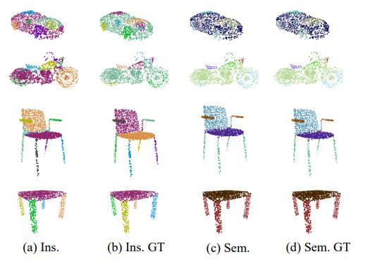 利用ASIS,对包含语义感知的实例分割和实例融合的语义分割的模型在S3DI数据集上进行端到端训练,其性能优于最先进的3D实例分割方法,同时3D语义分割任务的性能也有显著提升。此外,我们在shapenet数据集上的实验表明,ASIS也有利于部件分割。