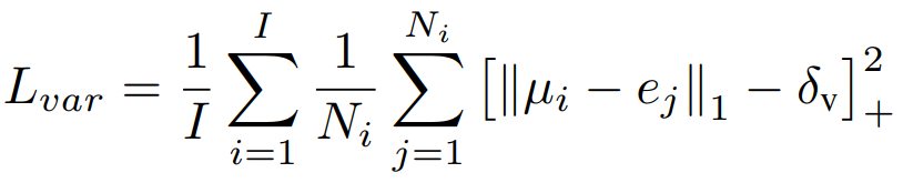 Lvar:使属于同一实例的嵌入向量接近向量的平均值,例如实例的中心。