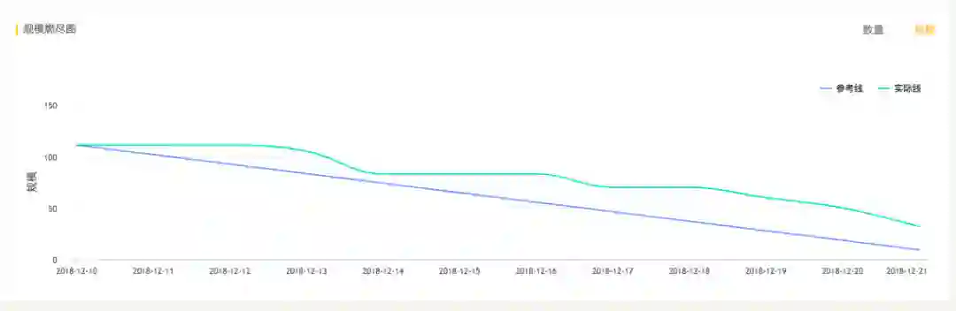 在工程师编码的过程中,研发负责人和产品经理都会随时通过`燃尽图`来关注迭代的进度,并在每日站会中沟通进展。