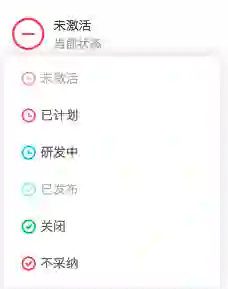 所以,在我司公共Backlog中的需求分为6个状态:未激活、已计划、研发中、已发布、关闭、不采纳,需求提交人根据需求状态就可以判断需求是否被采纳,如果被采纳已经进行到哪一阶段等信息,方便及时回复给客户。